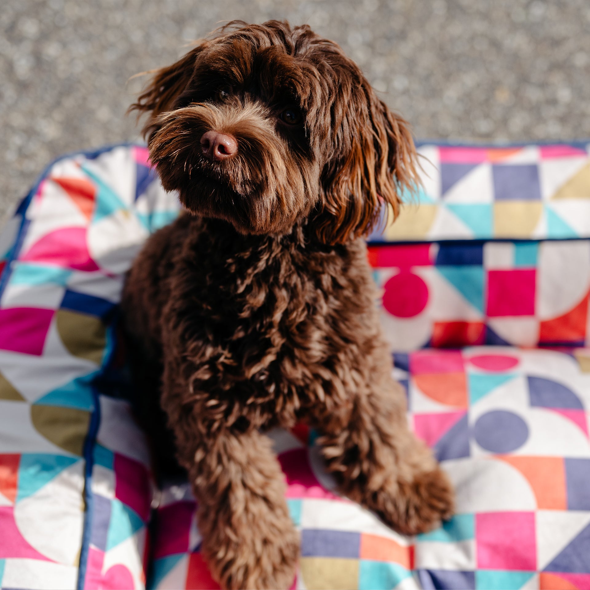 Das bo&flash. Boise Hundebett im Design Michaela aus der Graphic Groove Collection ist das perfekte trendige Statement für Deine Einrichtung. Mit seinen leuchtenden, auffälligen Farben Pink, Blau, Grün und Orange in einem grafischen Retro-Muster, setzt dieses Design einen auffälligen Akzent in Deiner Einrichtung. Peppe Deine Einrichtung mit diesem stilvollen und bequemen Hundebett für Dich und Deinen pelzigen Seelenverwandten auf!