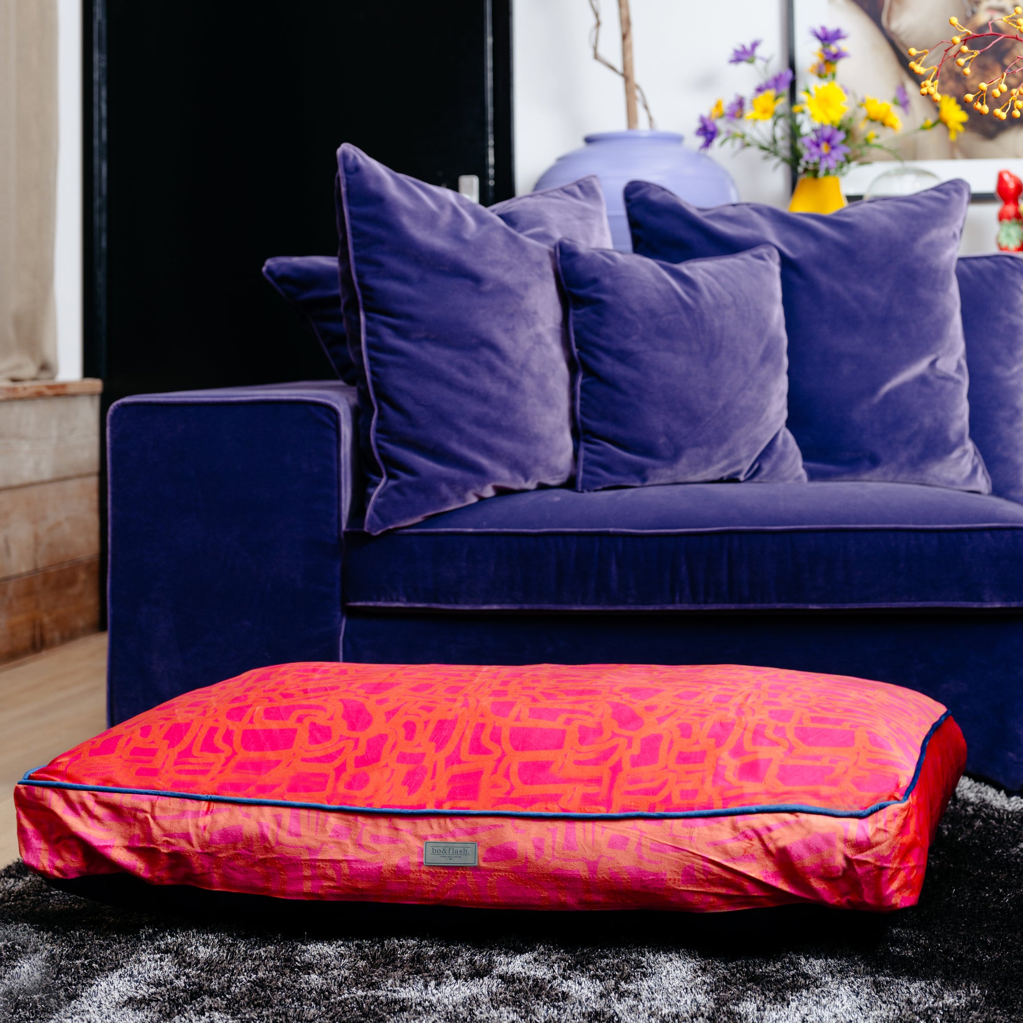 Das Hundekissen Madison von bo&flash. mit dem fröhlichen Chouk-Motiv aus der Graphic Groove Collection ist mehr als nur ein Accessoire für Dein Haustier: Es ist ein außergewöhnliches Stück, das Stil und Komfort nahtlos miteinander verbindet. Mit seinen leuchtenden Fuchsia- und Orangetönen und den abstrakten Formen ist es ein echter Blickfang und bietet Deinem pelzigen Seelenverwandten ein gemütliches Plätzchen zum Entspannen und Erholen. Dieses Kissen ist eine perfekte Ergänzung für Dein Zuhause, ideal für Innenräume, die einen Farbakzent brauchen, oder für solche, die bereits vor Lebendigkeit strotzen.