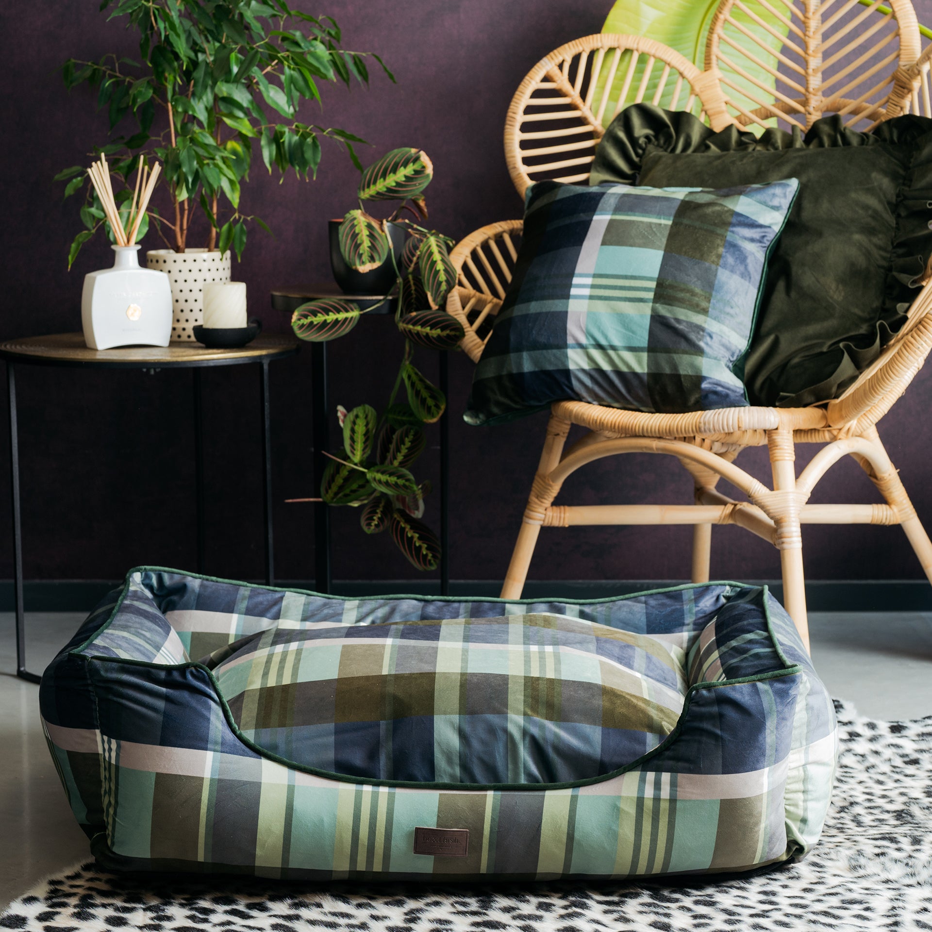 Gebe Deinem pelzigen Seelenverwandten den perfekten Platz zum Entspannen mit dem bo&flash. Austin Hundebett im Design Frank aus der Forest Fusion Collection. Franks wunderschönes Karomuster, das aus verschiedenen Grüntönen besteht, passt zu jedem Einrichtungsstil. Schaffe einen gemütlichen Rückzugsort für Deinen treuen Canem, an dem er sich entspannen und den ultimativen Komfort genießen kann.