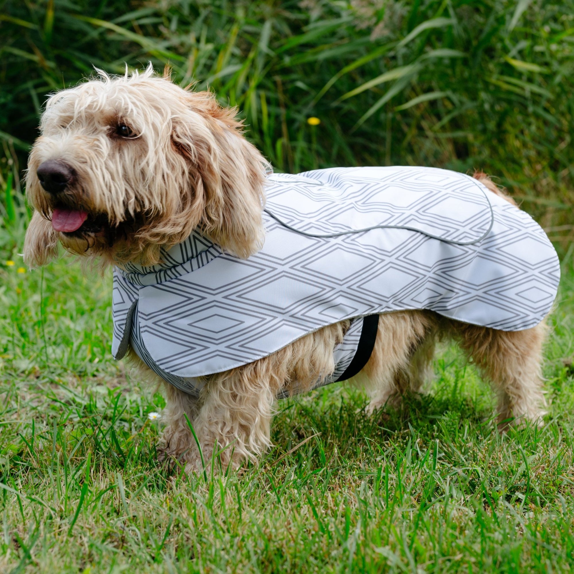 Wir präsentieren den bo&flash. Seattle Hundewintermantel im ruhigen Ruby-Design aus der Japandi Serenity Collection. Dieses ruhige, grau-weiß gestreifte Muster, das an zarte Diamanten erinnert, verkörpert Schlichtheit und Raffinesse. Perfekt geeignet für eine Vielzahl von Modestilen, wird dieses Winter-Essential Deinem pelzigen Seelenverwandten kuschelig warme als auch modisch beeindruckende Stunden bescheren.
