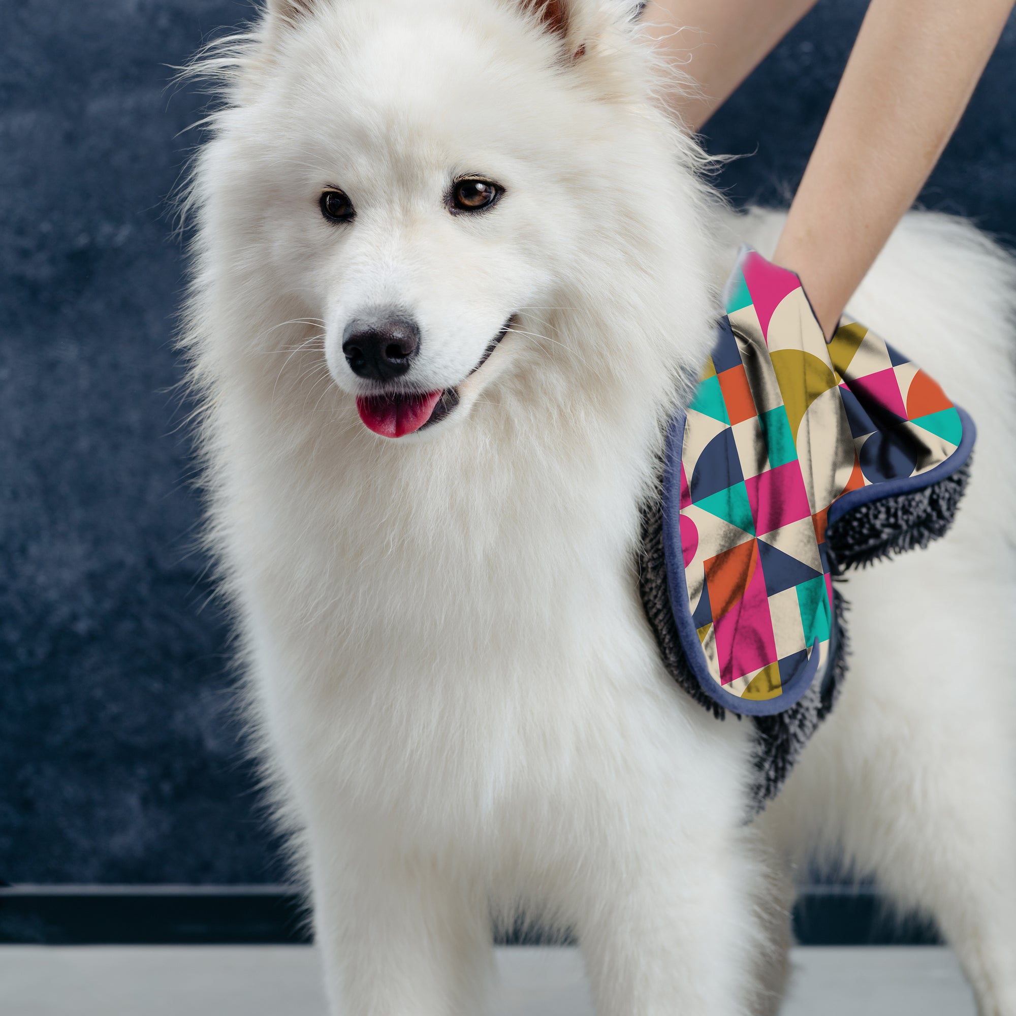 Das bo&flash. Key West Hundehandtuch mit dem leuchtenden Michaela-Print aus der Graphic Groove Collection ist mit seinem verspielten geometrischen Design in fröhlichen Fuchsia-, Blau-, Grün- und Cremetönen ein echter Hingucker für Deinen treuen Gefährten. Mache mit diesem stilvollen und funktionellen Handtuch das Abtrocknen Deines pelzigen Seelenverwandten zum Kinderspiel und bring Farbe in Euren Tag.