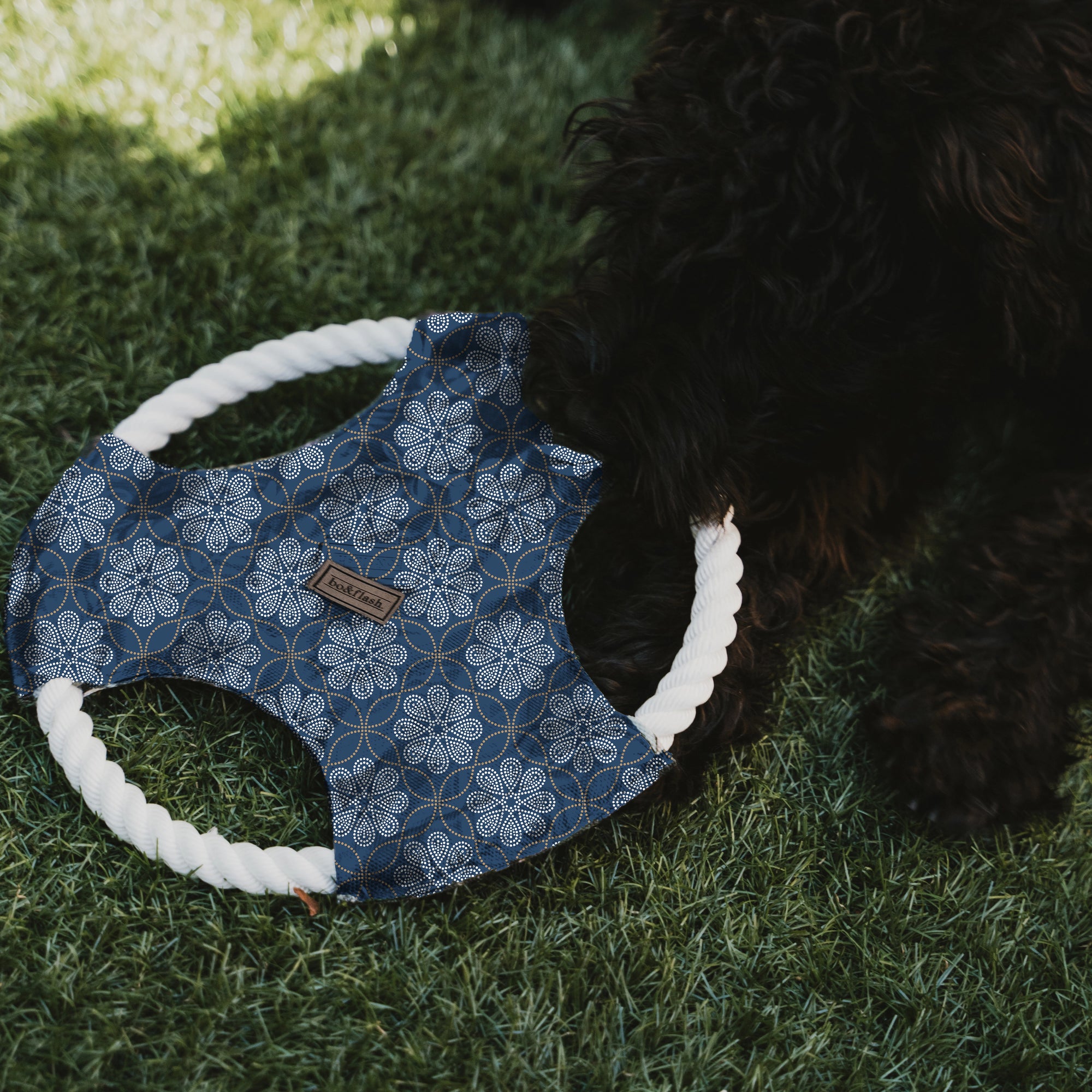 Entdecke das Hundespielzeug Denver von bo&flash. mit dem bezaubernden Design Matthias aus der Ethnic Euphoria Collection. Matthias zeigt ein florales Muster aus Punkten mit tiefblauen Farbtönen, die durch einen Hauch von Orange akzentuiert werden und eine ruhige Ästhetik schaffen. Diese Spielzeuge, die sich perfekt in verschiedene Stilrichtungen einfügen, werden nicht nur von Deinem pelzigen Seelenverwandten geliebt, sondern passen auch zu einer Vielzahl von Inneneinrichtungen, was sie zu einer idealen Ergänzung für jeden Raum macht.