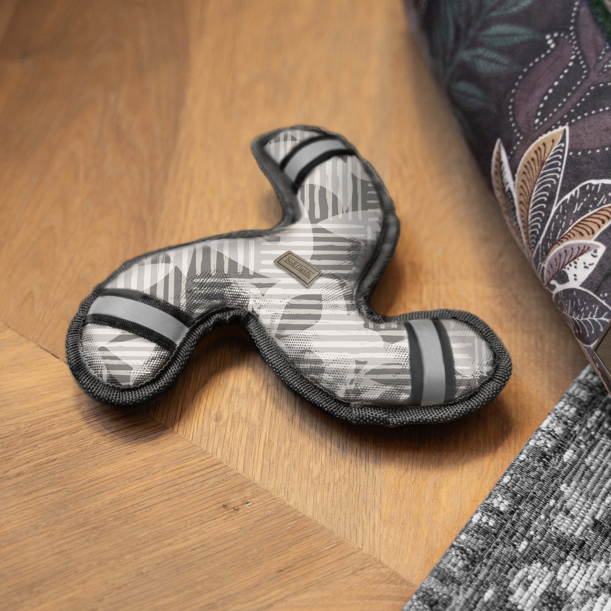 bo&flash. präsentiert das Hundespielzeug Denver aus der Japandi Serenity Collection im charmanten Design Peter. Peter zeigt ein stilvolles Streifenmuster mit einer subtilen grafischen Überlagerung, alles in einem eleganten Grauton. Diese Spielzeuge bieten nicht nur endlose Unterhaltung für Deinen pelzigen Seelenverwandten, sondern bringen auch einen Hauch von spielerischer Raffinesse in Dein Leben. Verbessere ganz einfach die Spielzeit Deines Haustiers mit unserem Hundespiel-Set Peter.