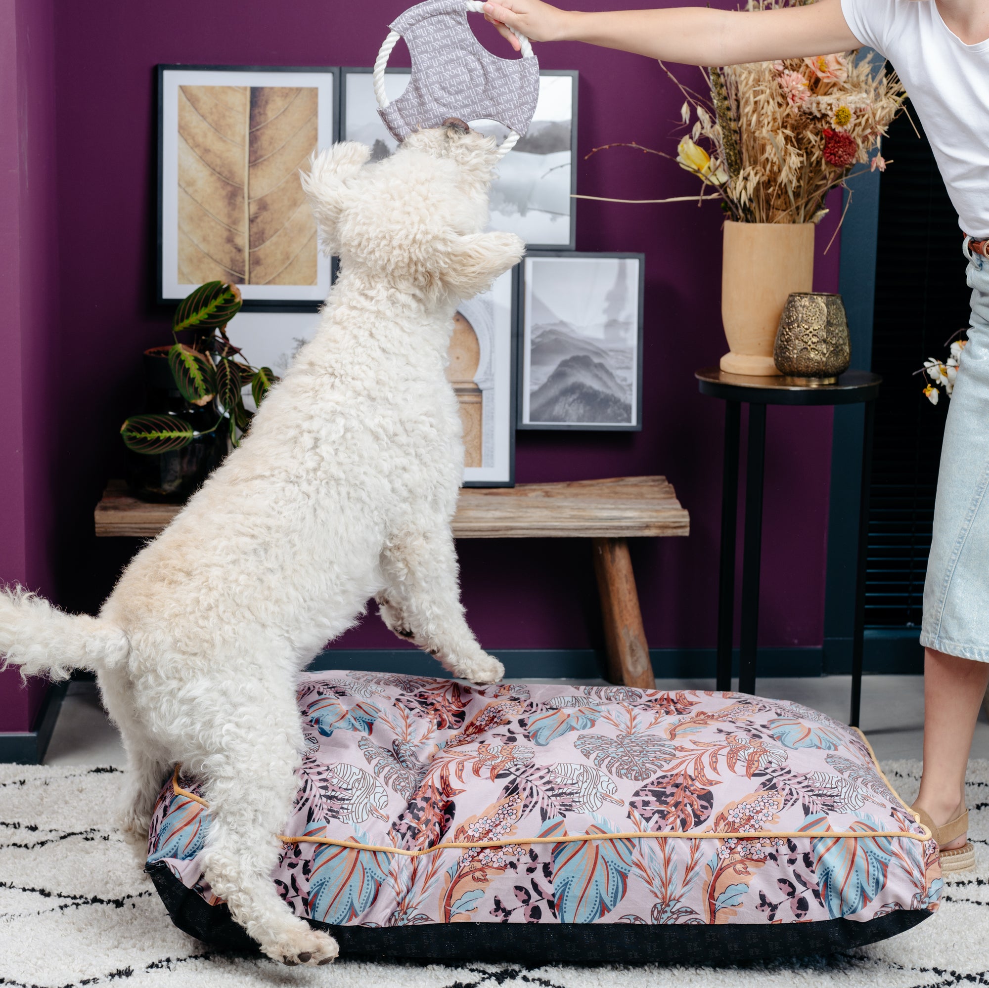 Elevate both your home decor and your furry soulmate’s comfort with bo&flash's dog pillow Madison, part of the Ethnic Euphoria collection in the Erdem design. This vibrant mat, adorned with cheerful leaf patterns in beige, turquoise, yellow, and orange, adds a delightful touch for any modern or bohemian interior while providing a cozy spot for your beloved furry soulmate.