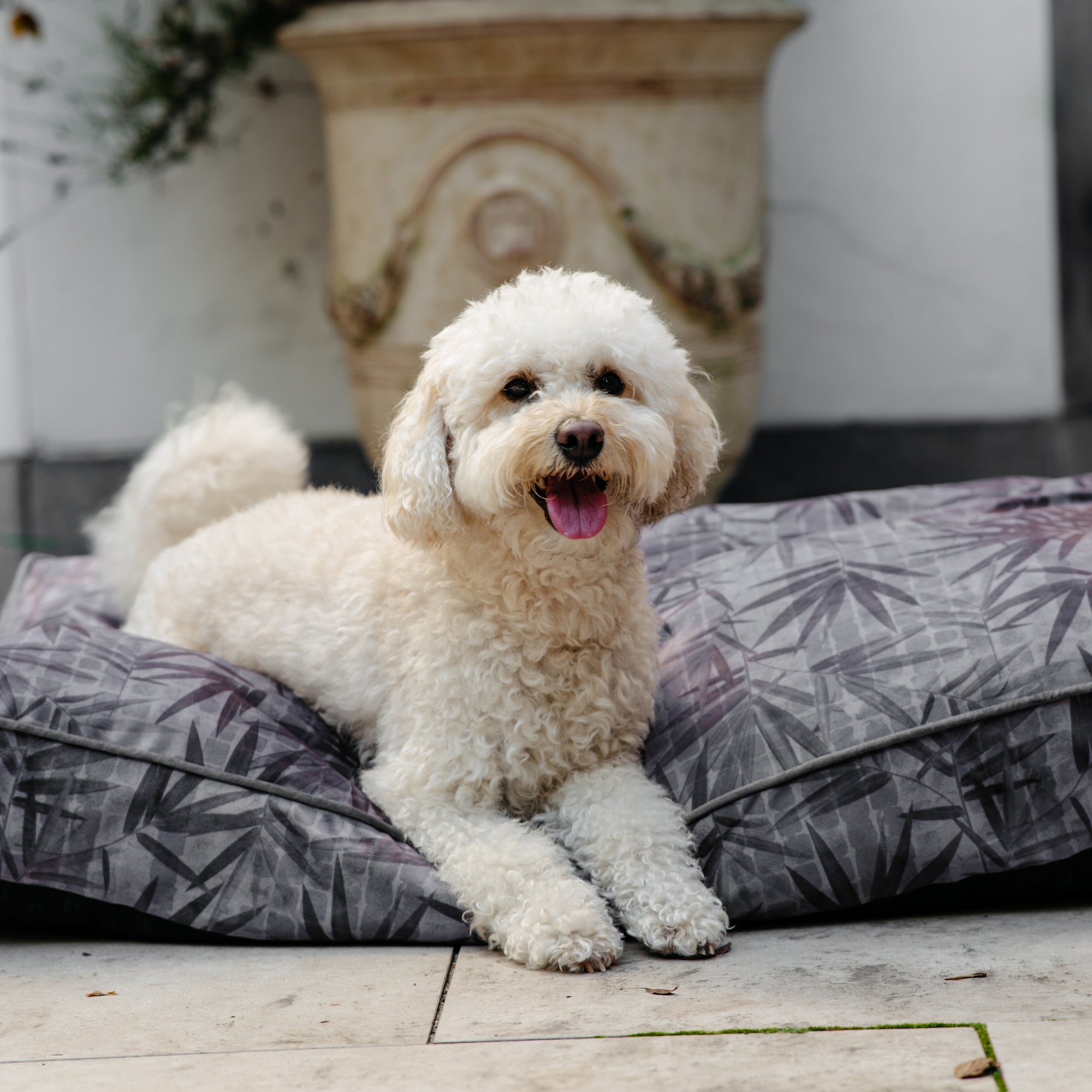 The bo&flash dog cushion Madison, with the Ilse design, from the Japandi Serenity collection combines class and style effortlessly. Its calm grey tones and elegant leafy pattern add a calming and chic touch to your interior. Beyond its appealing aesthetics, this pillow ensures exceptional comfort for your beloved furry soulmate.