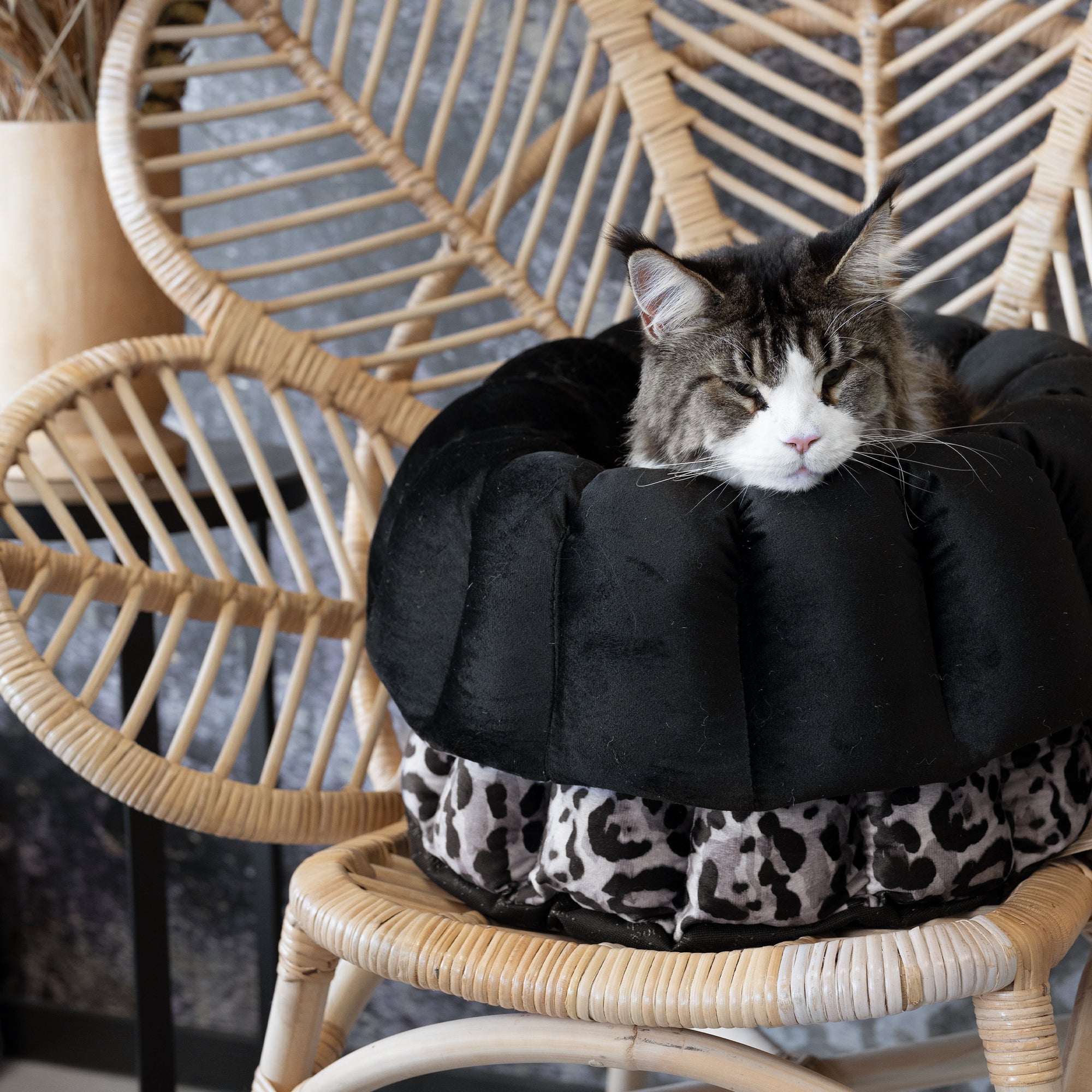 Discover the bo&flash Cat Bed Los Angeles, featuring the bold Claudelle design from our Ethnic Euphoria Collection. This cat bed showcases a captivating leopard print that adds a touch of exotic flair to any interior. Designed with your furry soulmate in mind, it offers both comfort and style, and making it a perfect addition to your home. Enhance your pet's relaxation with the Bo&Flash Claudelle Cat Bed, where comfort meets style in every cozy corner.